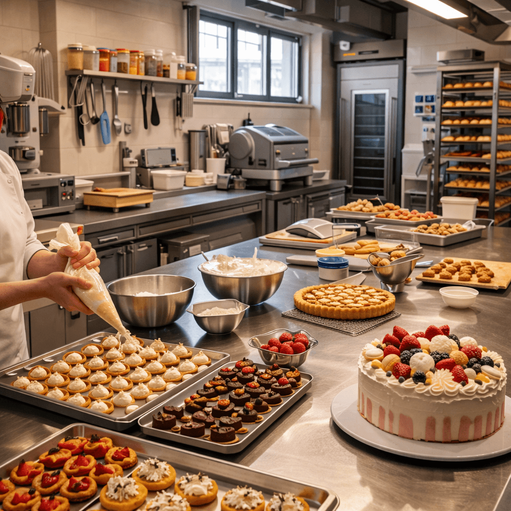 Dietro al bancone c’è il cuore di Bar Pasticceria Smile: il laboratorio. È qui che ogni giorno nascono brioche, mignon, crostate, torte e dolci per le occasioni speciali.